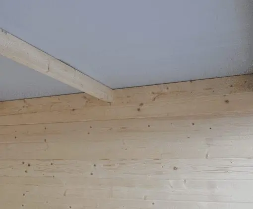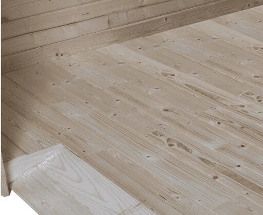 Wanden: opgebouwd volgens het klassieke blokhut-principe, in 44mm dik massief vurenhout van het hoge Noorden